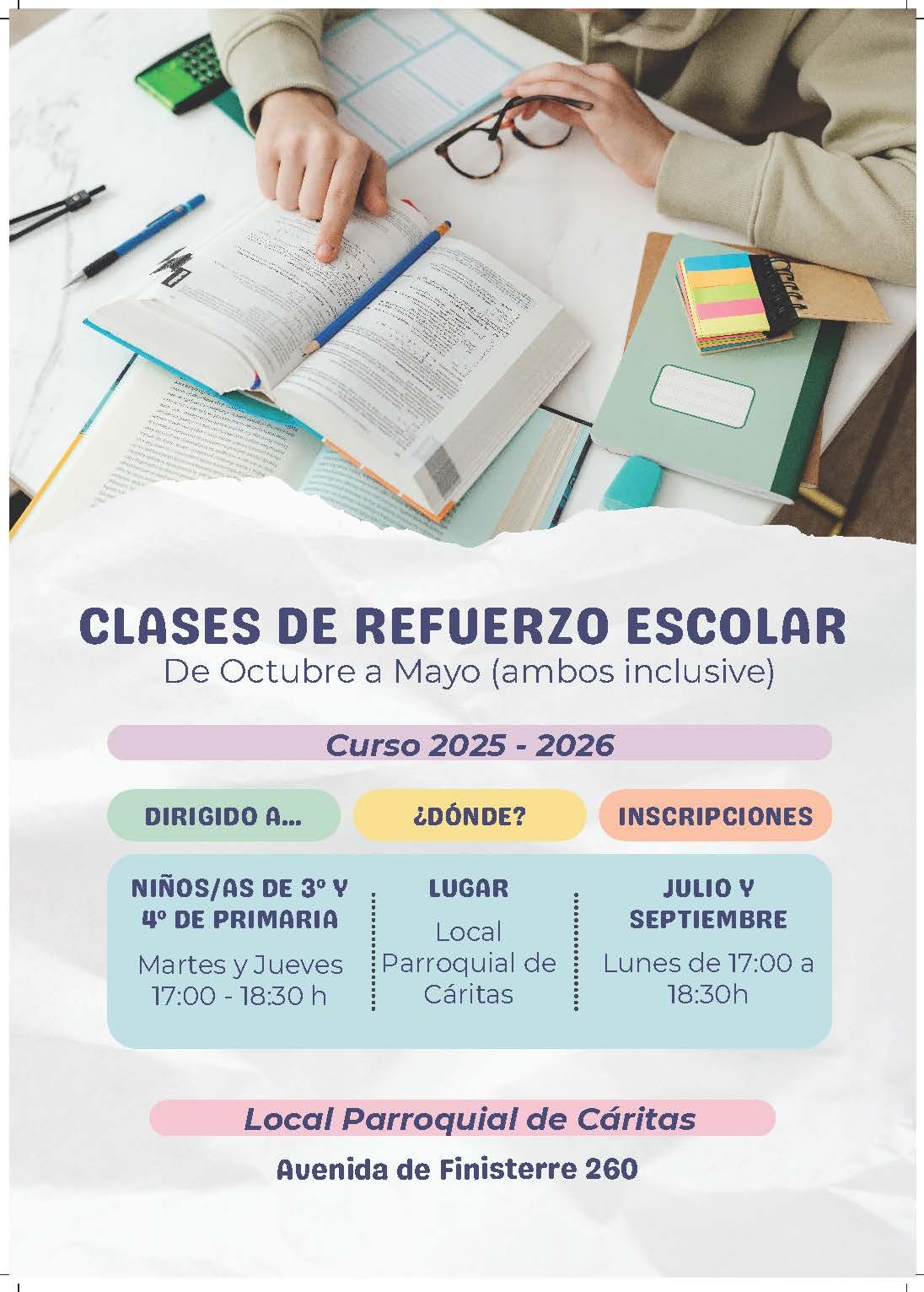 Clases de refuerzo escolar de Cáritas parroquial
