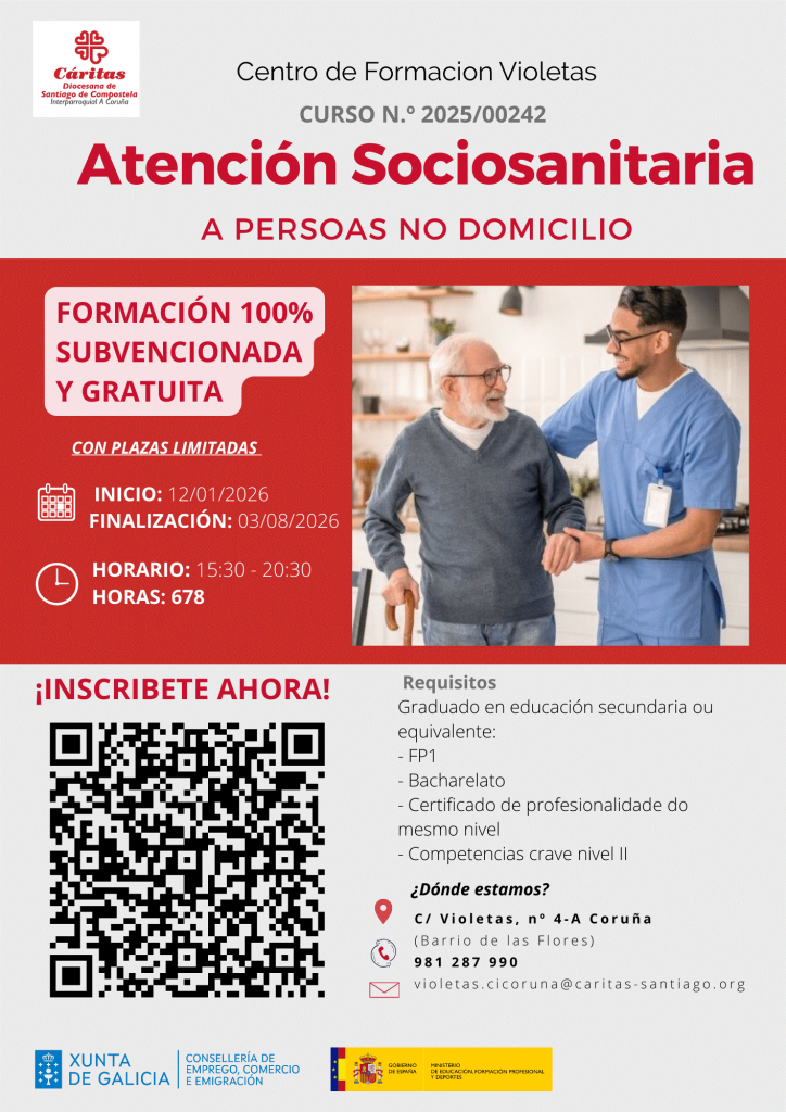 Inscripción: www.caritascoruna.org o Centro de formación Violetas.